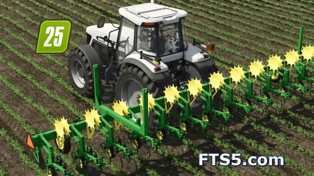 约翰迪尔 825 耕作机由 John Deere 于 1982–1996 年生产。该机精密设计,相比之前的型号进行了多项改进,可根据不同作物需求订制多种配置。本模组提供多种行距配置,同时可选择作物护板、下压弹簧、导向犁片等附加选项。在除草剂普及之前,机械除草是必不可少的作业方式,而在今天的某些作物管理中仍然有应用。使用这款 80–90 年代的经典工具,经济高效地除草并提高产量!