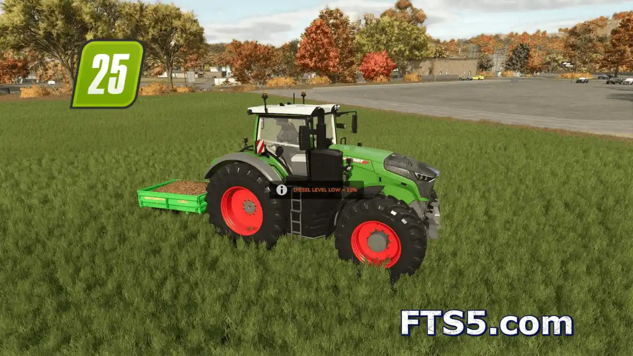 低油量警告 为《模拟农场25》中的所有车辆增加了自动低油量警告系统。该模组可实时监控柴油、电力和甲烷燃料的剩余量,当燃料低或临界时,会通过声音提示和屏幕中央闪烁消息提醒玩家。