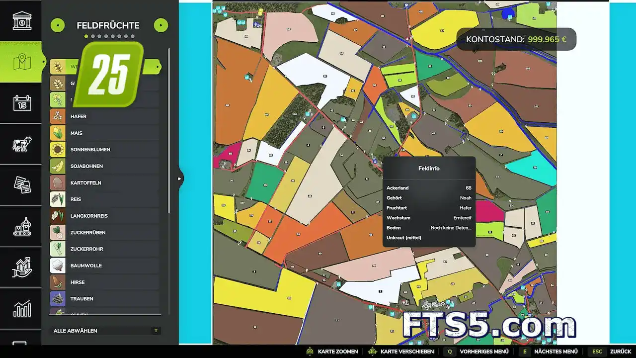 地图包含 112 块田地与草地,面积从 1.4 公顷至 53 公顷 不等,
